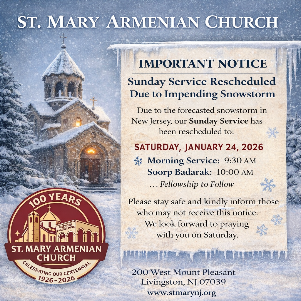 Whether you are a fellow Armenian, or one of our neighbors from around the globe, we welcome you to the website of the St. Mary Armenian Church of Livingston, located at 200 W Mt Pleasant Ave, Livingston, NJ 07039.